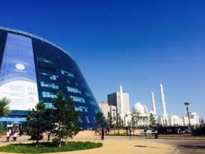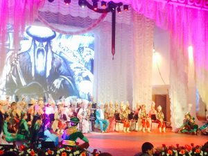 It’s been a wonderful first day at the International Council for Traditional Music World Conference in Astana, Kazakhstan at the Kazakh National University of Arts! You can read more about the opening events at this website on the blog. Tonight we were treated to a spectacular concert showcase of Kazakh National U of Arts student and faculty (including the Provost!). Performances by singing storytellers were featured in the concert so I’d like to share a concert photo with you. This student ensemble, led by their teacher, a woman, in playing an instrument that appears to be have been played, historically, by male performers only (much like the bandura it seems)! For more videos (including a bardic performance), follow me on twitter @m_ostashewski and check out the blog on my website at marciaostashewski.ca!